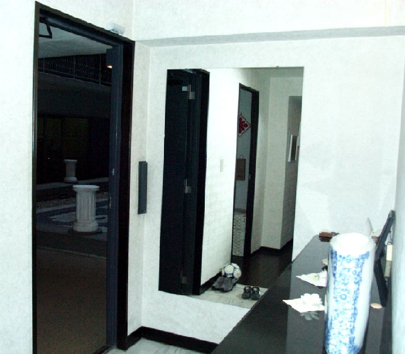 玄関、居間などに姿見を取り付けることにより、お部屋が広く明るく見えるようになります。